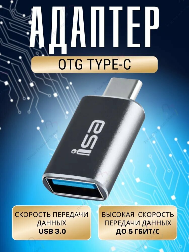 Переходник USB 3.0 на Type-C, Адаптер OTG USB-A 3.0 гнездо на Type-C штекер , ISA P-34 чёрный