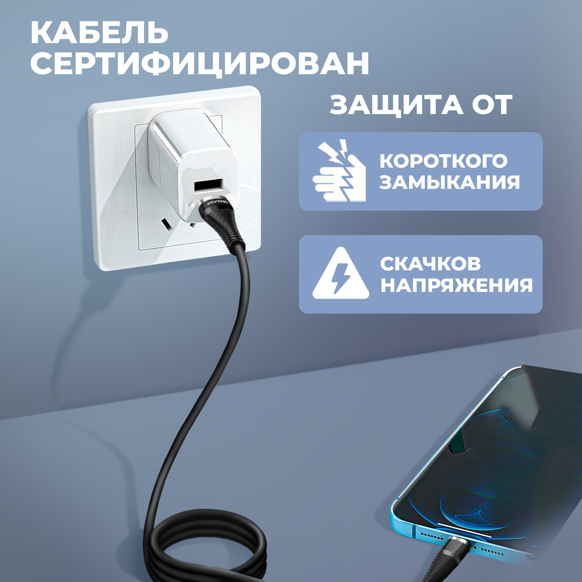Кабель USB-Micro с быстрым зарядом, WALКЕR C735, 3.1А, 1 м, силиконовая оплетка, кабель, шнур usb для телефона, планшета, baseus, переходник, черный