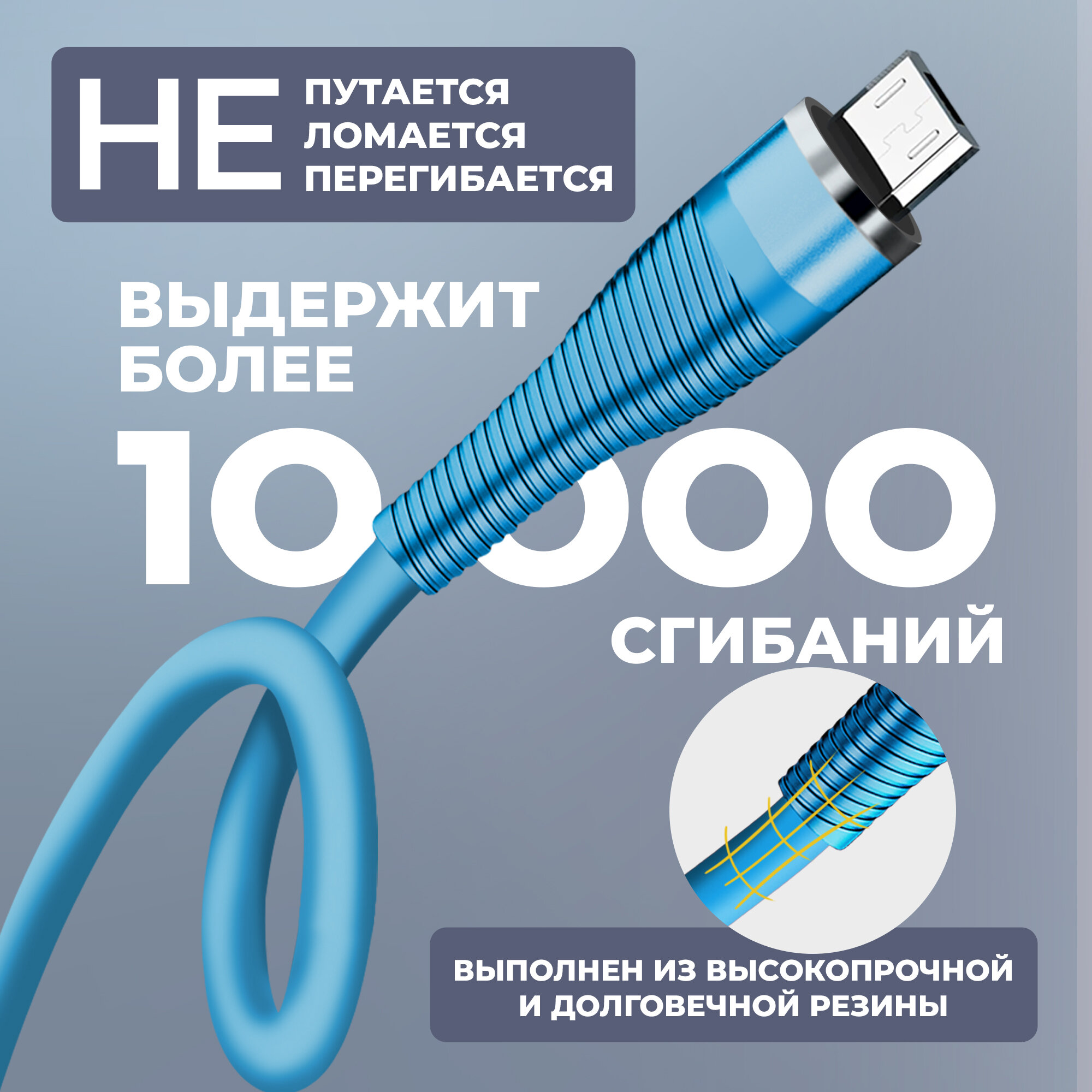 Купить Кабель для зарядки с быстрым зарядом, WALKER C735, 3.1 А в силиконовой оплетке, разъём USB-Micro, 1 м, шнур usb питания для телефона андроид, синий