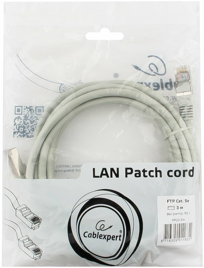 Кабель FTP 5E Cablexpert, 3 м., серый (PP22-3m)