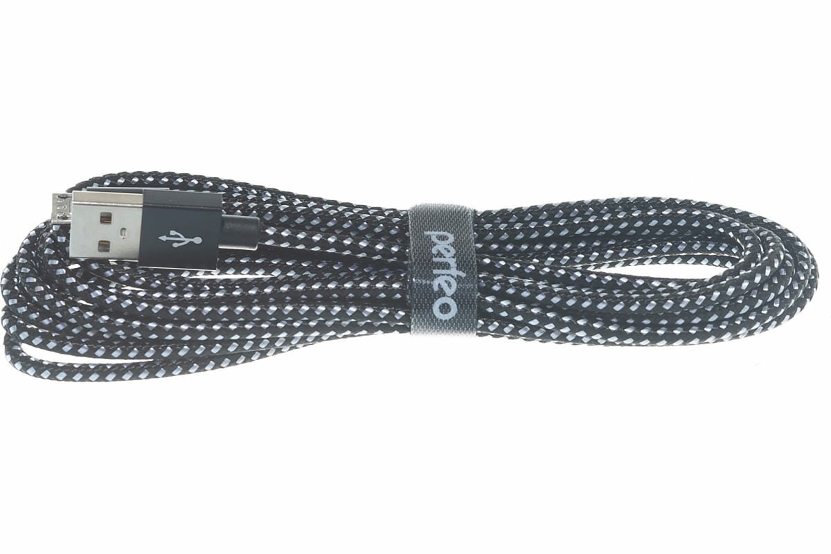 Кабель PERFEO USB2.0 A вилка - Micro USB вилка, черно-белый, длина 3 м. (U4802)
