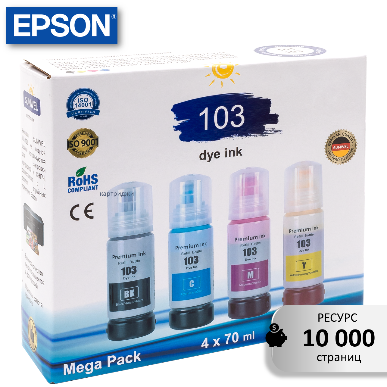 Чернила краска для принтера EPSON 103/101, набор 4х70 мл интересное: