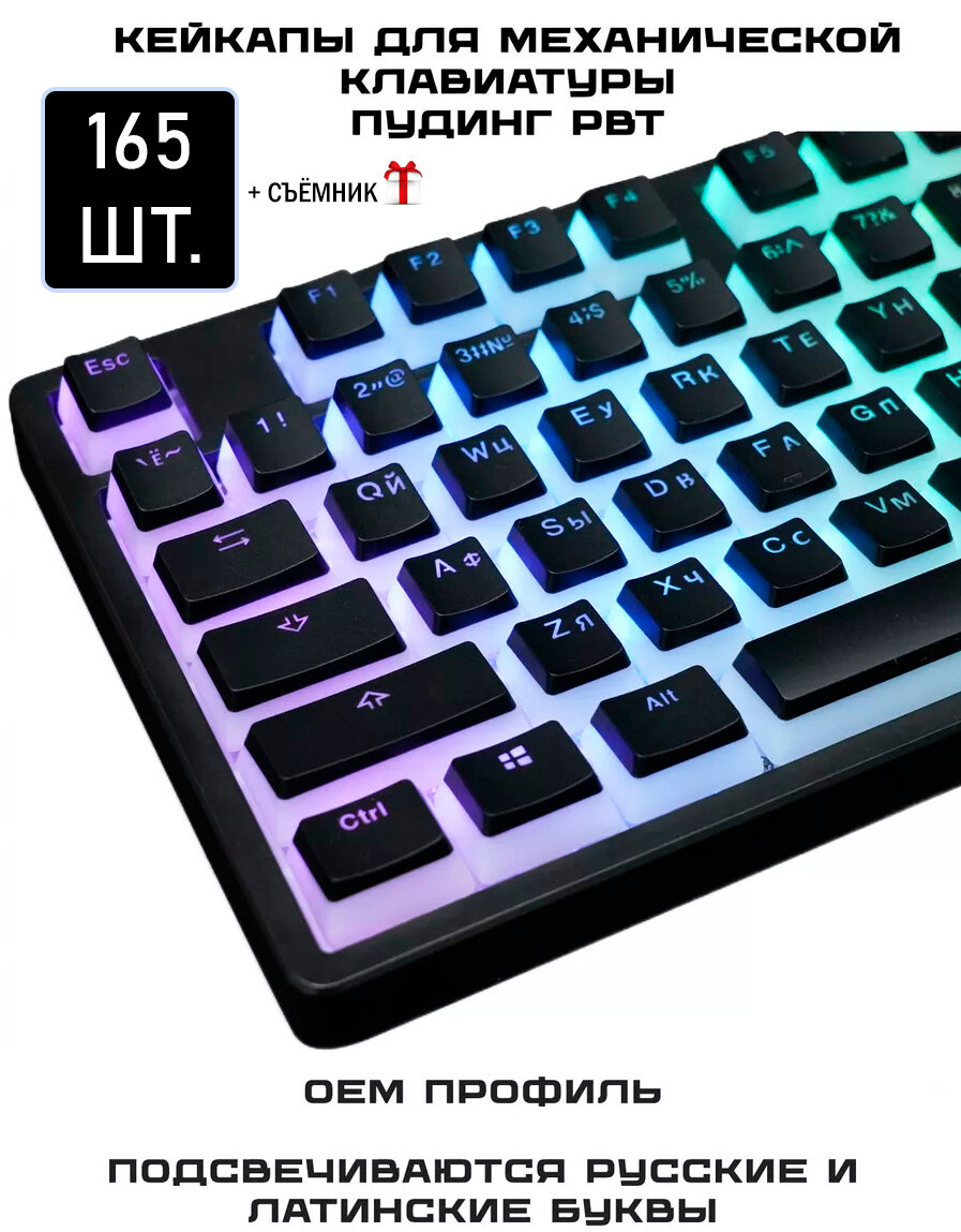 СохранитьКейкапы для механической клавиатуры 165 шт. пудинг черный PBT интересное: