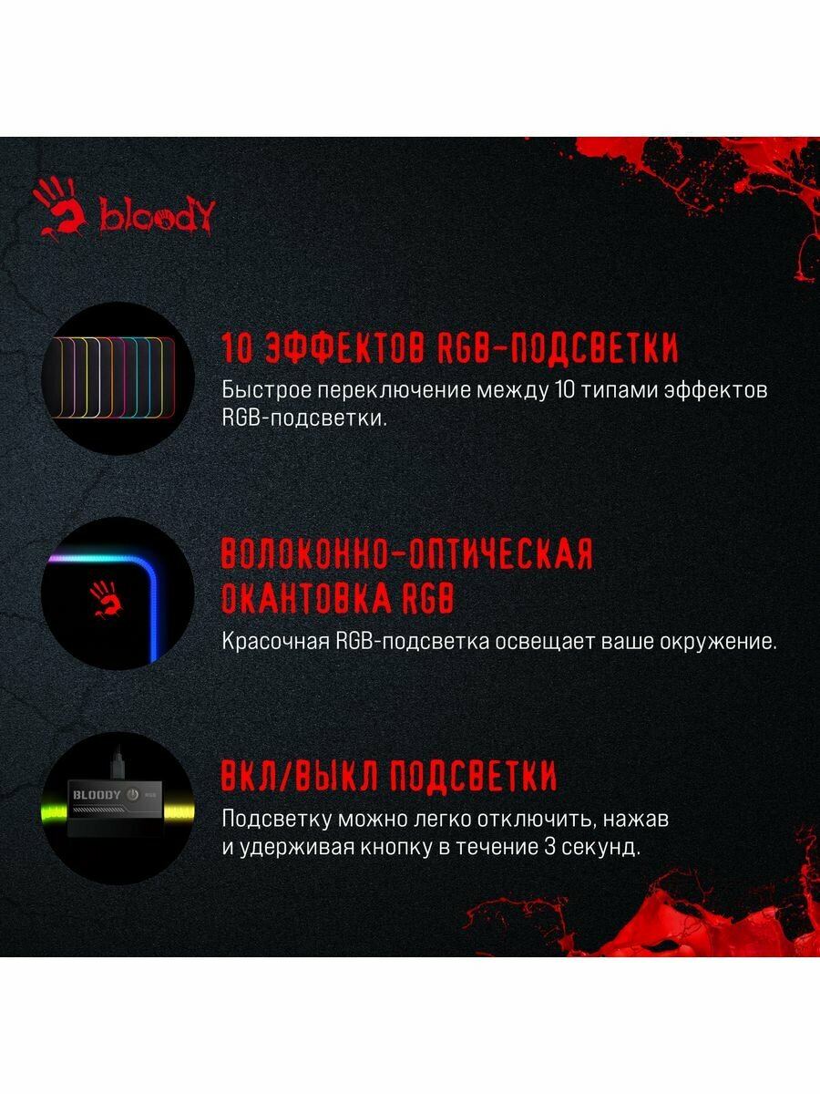 | Дополнительные функции | RGB-подсветка / прошитые края |