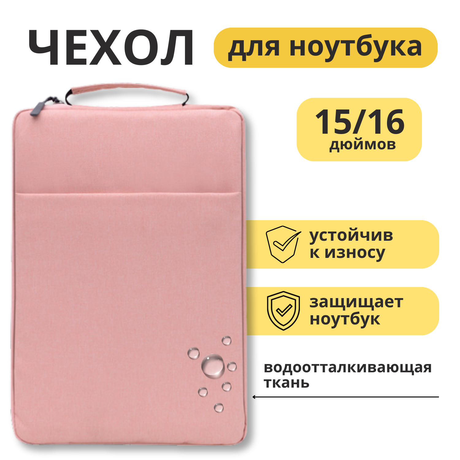 Чехол для ноутбука с дополнительным отделением и ручкой 15-16" / Сумка для ноутбука (розовый) интересное: