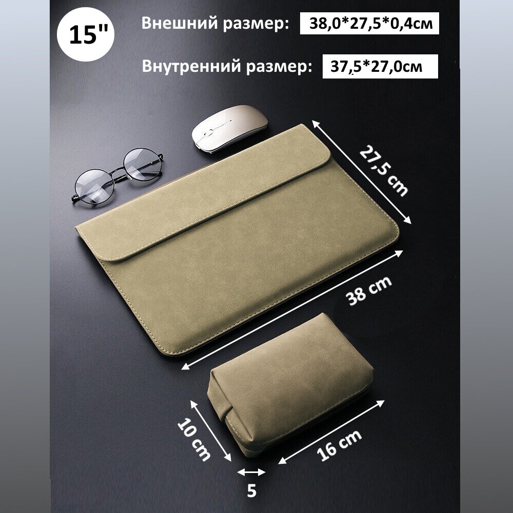 Чехол для для MacBook Pro 15, для ноутбука до 14,5" из эко-замши, с сумкой для аксессуаров, Бежевый интересное: