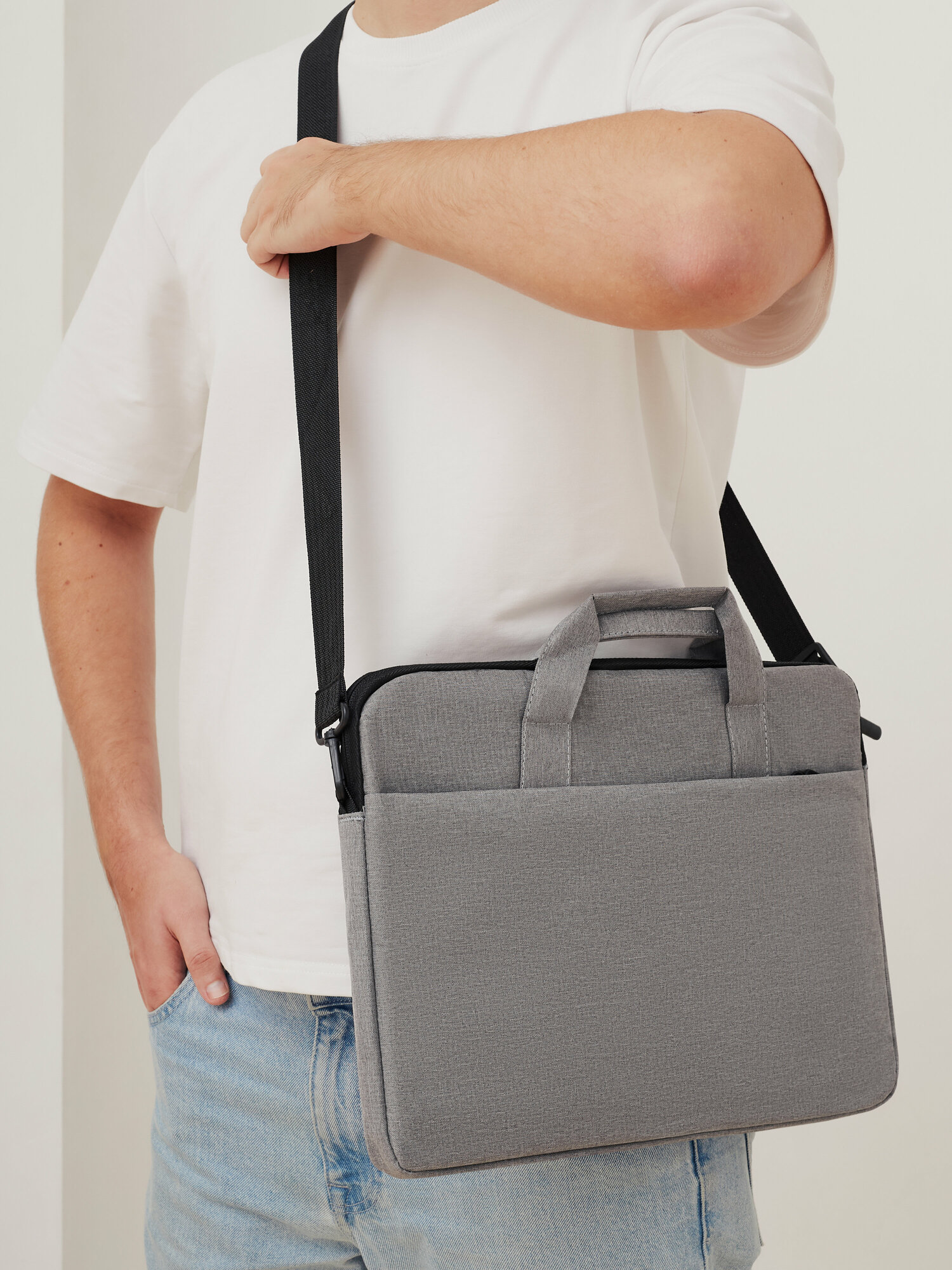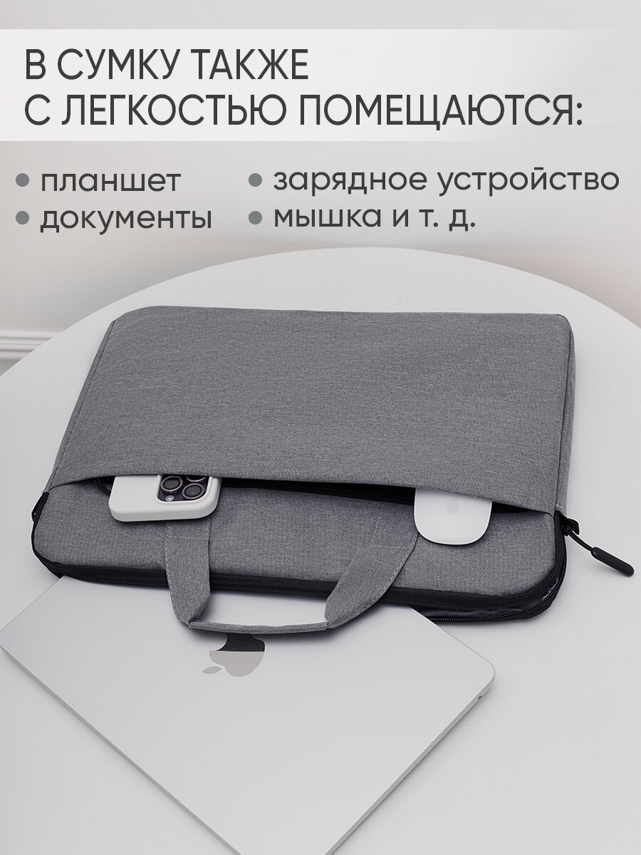 Сумка для ноутбука 15.6, 15, 14 дюймов серая из полиэстера Jils. Кейс для MacBook, с ручками, с плечевым ремнем, на молнии, портфель, чехол интересное: