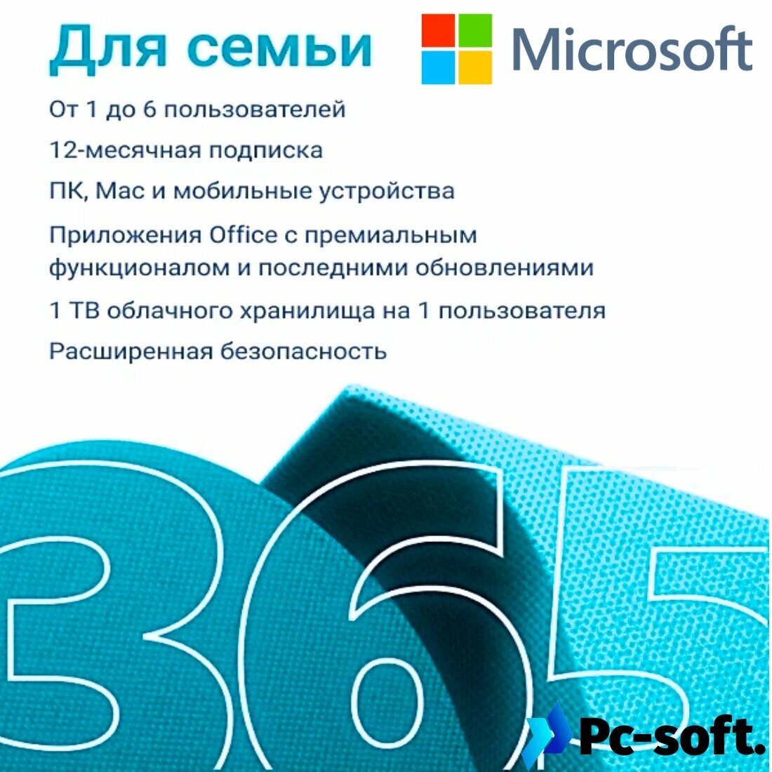 Купить Microsoft 365 семья / 12 месяцев / Office 365, Привязка к Вашей учетной записи через другой регион) Русский язык.