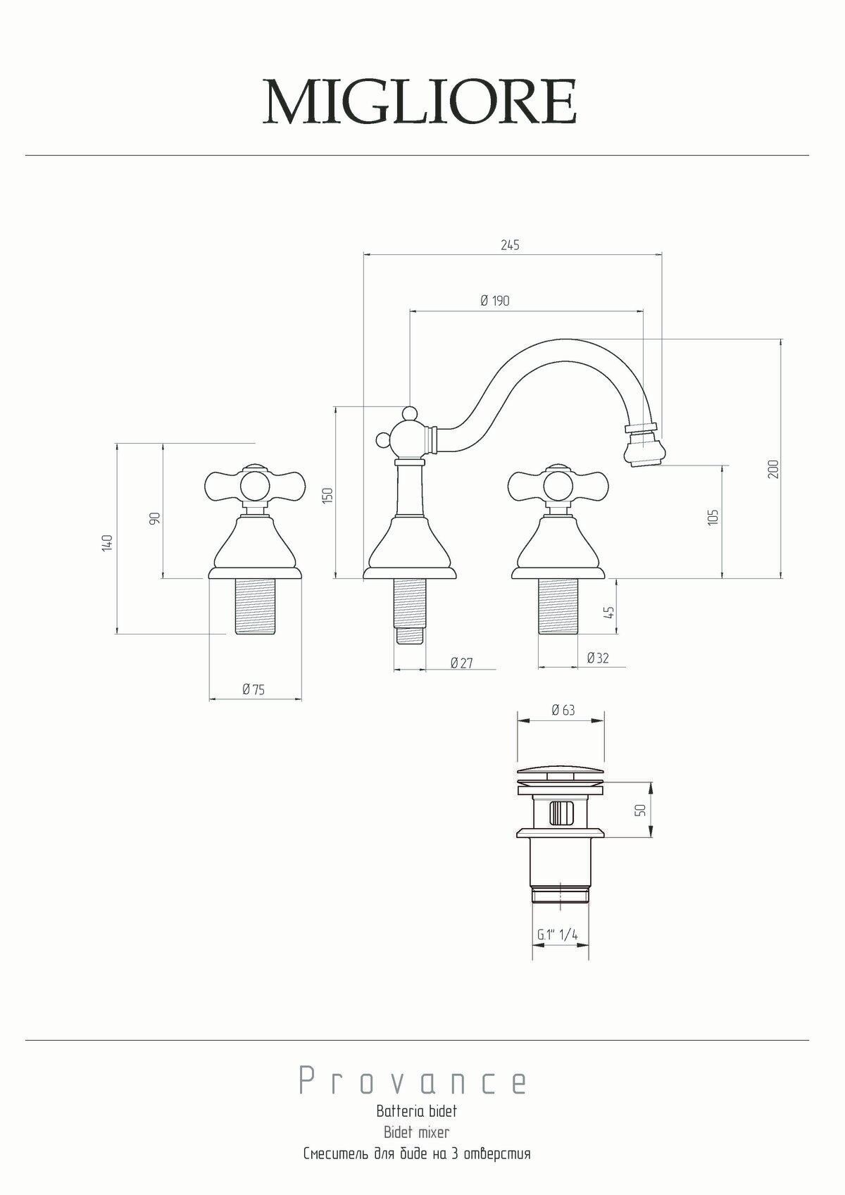 Migliore Смеситель Provance 19461 для биде на 3 отверстия, бронза