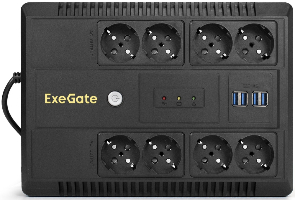 ИБП ExeGate NEO NNB-650. LED. AVR.8SH. CH <650VA/360W, LED, AVR, 8*Schuko, 4*USB-порта для зарядки, Black> EX295011RUS