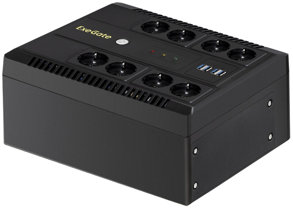 ИБП ExeGate NEO NNB-650.LED.AVR.8SH.CH <650VA/390W, LED, AVR, 8*Schuko, 4*USB-порта для зарядки, Black>