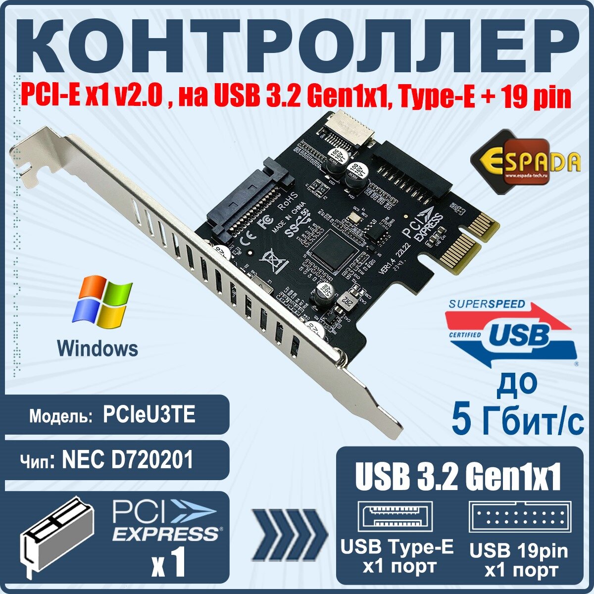 Контроллер PCI-E, USB3.0 Type-E+ USB 20pin, PCIeU3TE, Espada интересное: