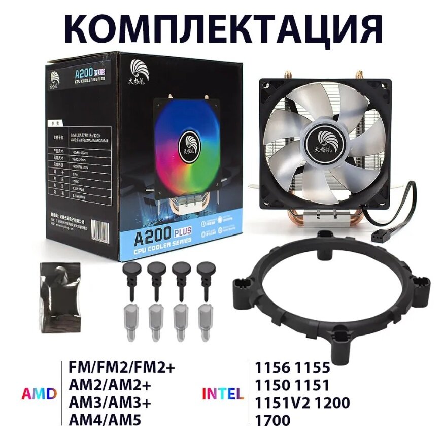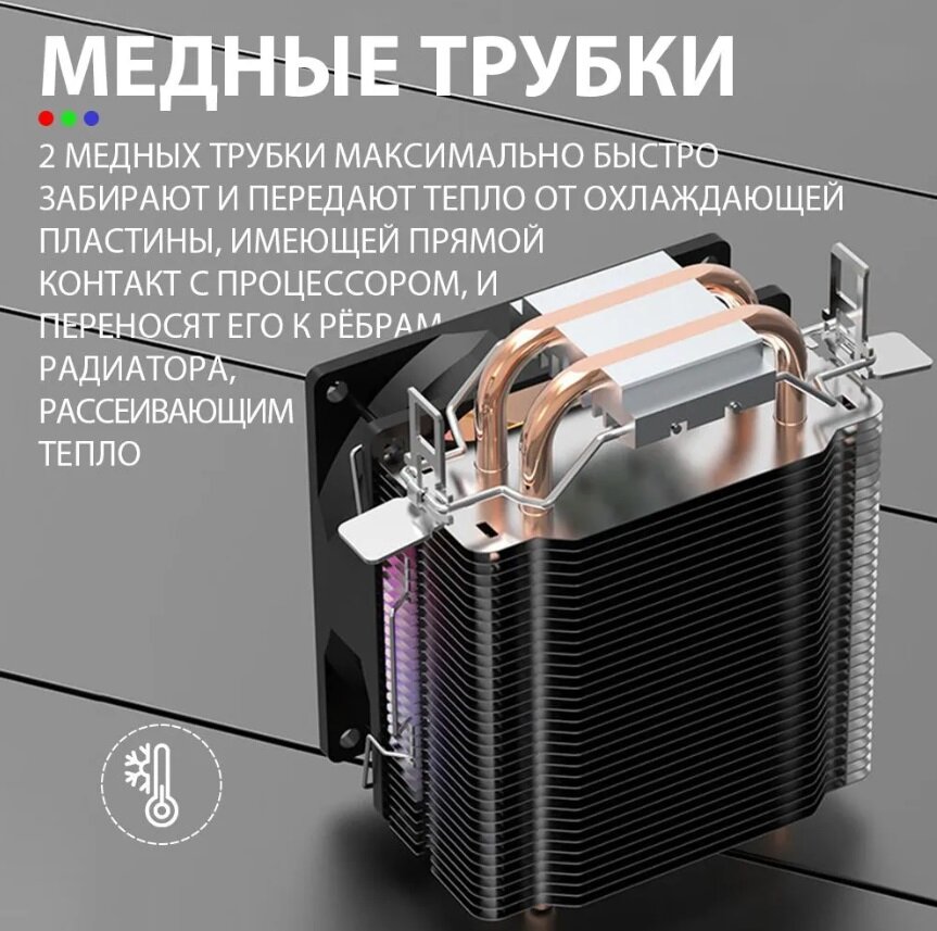 Кулер для процессора башня 2 тепловые трубки и вентилятор 92мм с подсветкой RGB интересное: