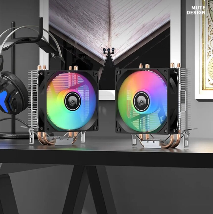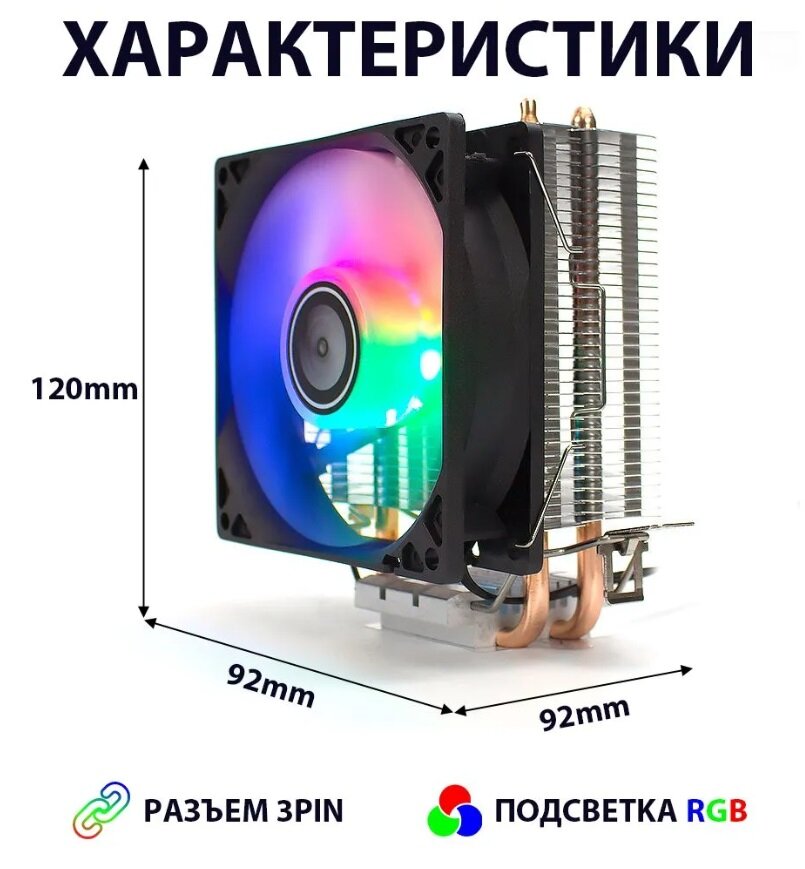 Купить Кулер для процессора башня 2 тепловые трубки и вентилятор 92мм с подсветкой RGB