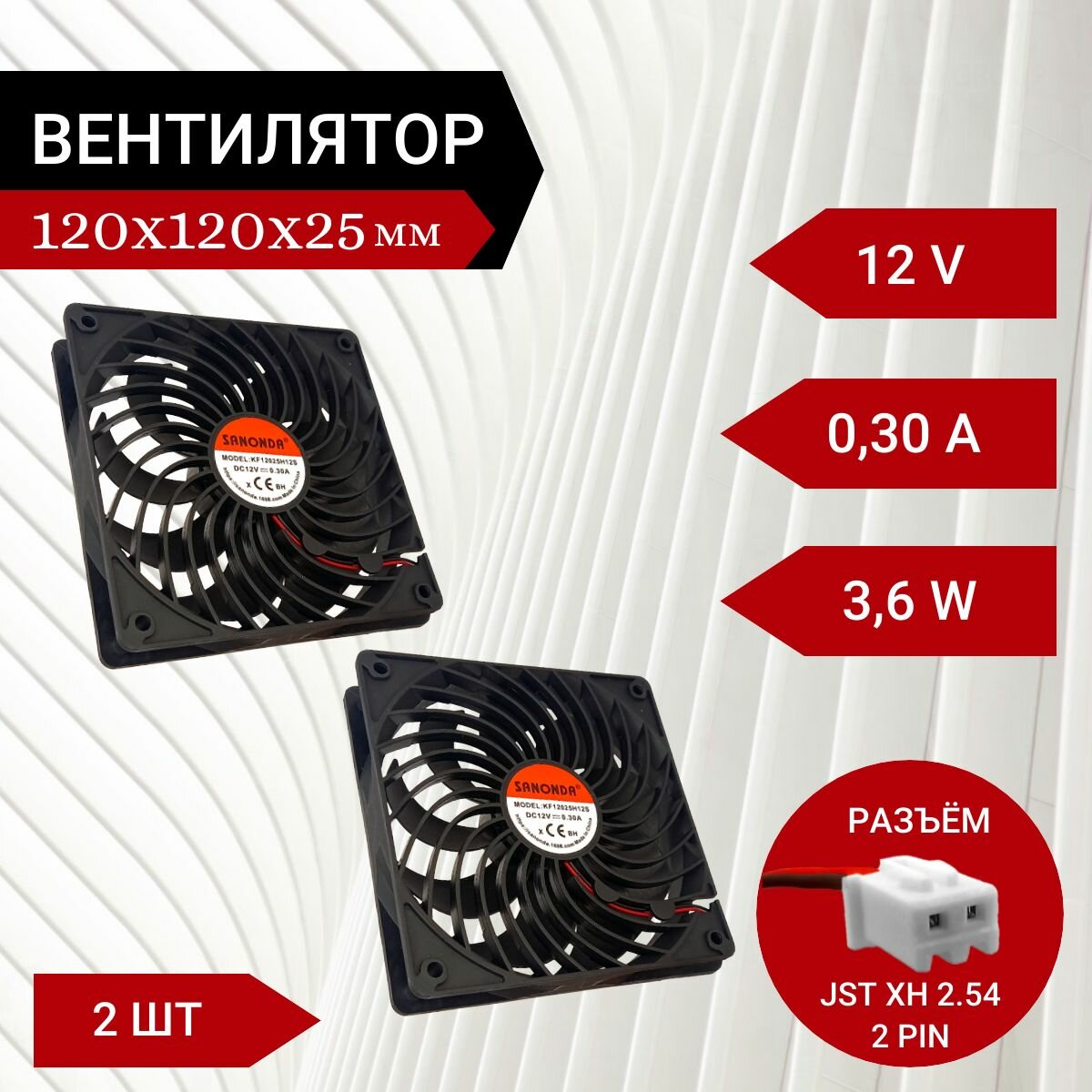 Купить 2 шт Вентилятор / Кулер 12V DC 0.3A 120х120х25мм 3.6W 2 PIN с решеткой