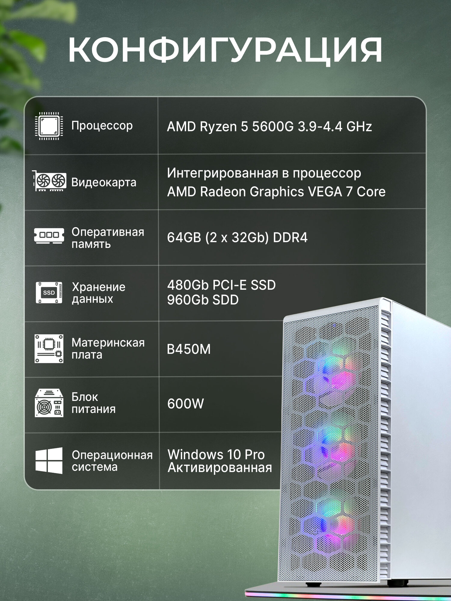 Компьютер GANSOR-3074863 Intel i3-10300 3.7 ГГц, B460, 64Гб 2666 МГц, SSD 480Гб, HDD 3Тб, Intel HD Graphics 630, 500Вт, Midi-Tower (Серия OPTIMAL)