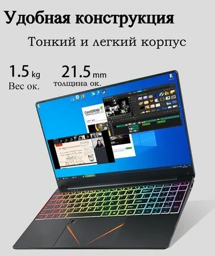 15,6 ноутбук RGB Intel Celeron N95 (3.4 GHz, 4 ядра), RAM 32 GB, SSD 512 GB, Intel UHD Graphics, Windows 10 Pro