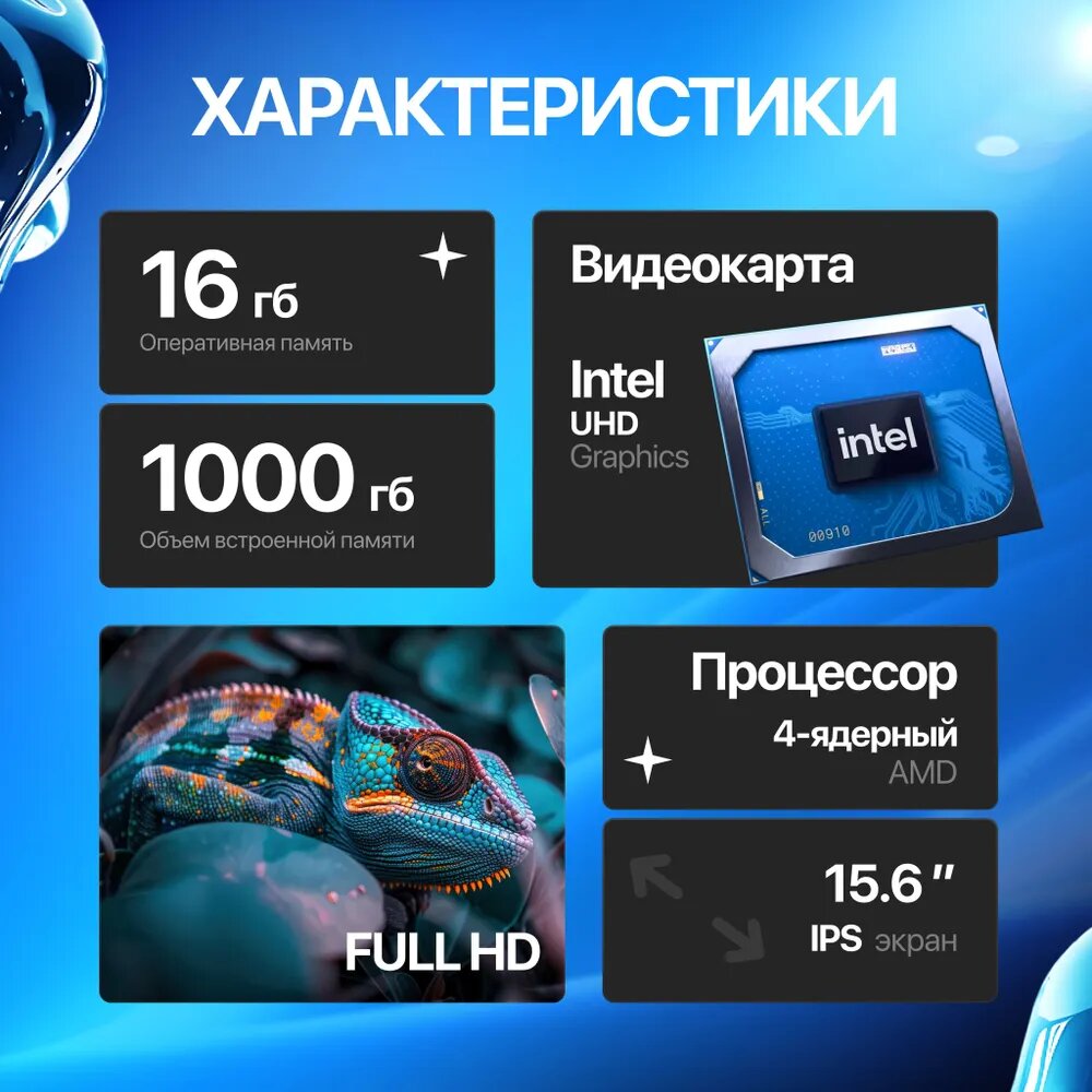 Купить Ноутбук игровой процессор INTEL CELERON N5095 (2.00 GHz, 4 ядра) / DDR4 16 GB/ NAND FLASH 1000 GB/ 15.6 inch/ Widows 10.0 pro