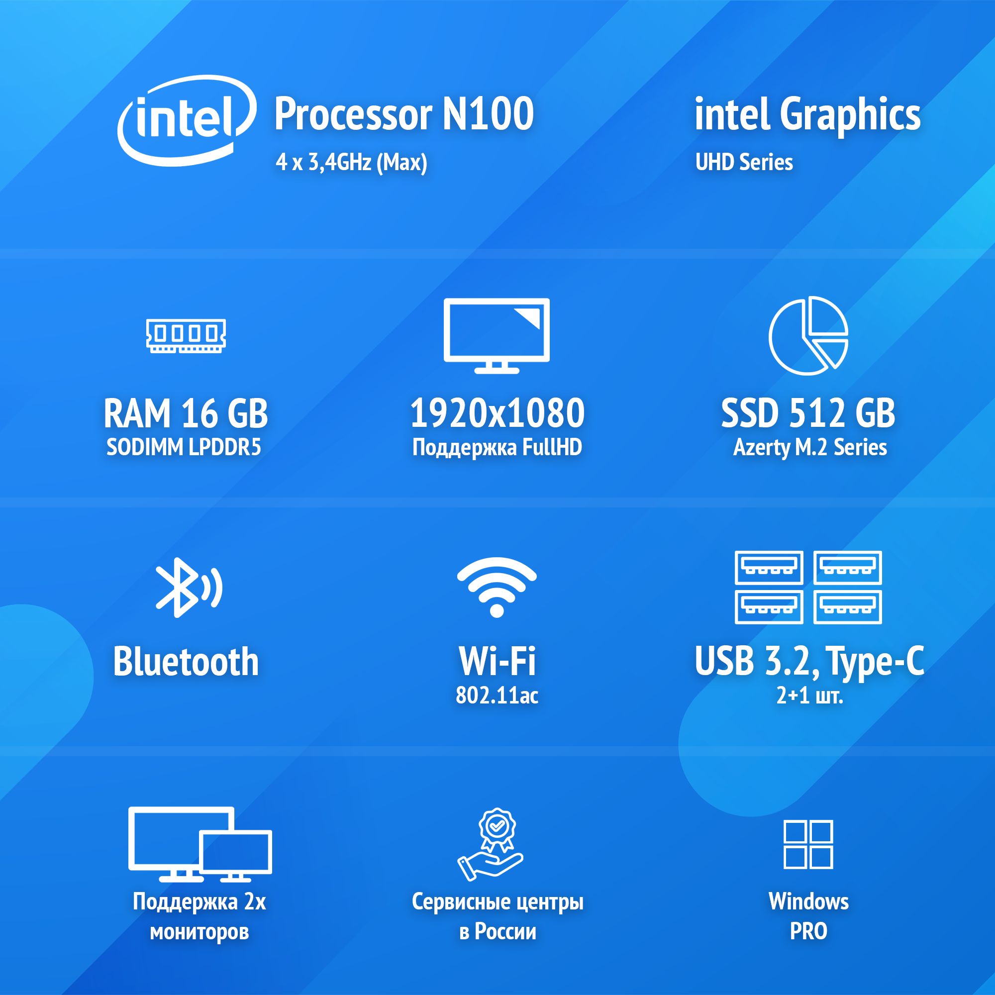 Ноутбук Azerty RB-1552 (15,6 IPS 1920x1080 Intel N100 4x0.8 ГГц, 16 Гб LPDDR5, 128 Гб SSD)