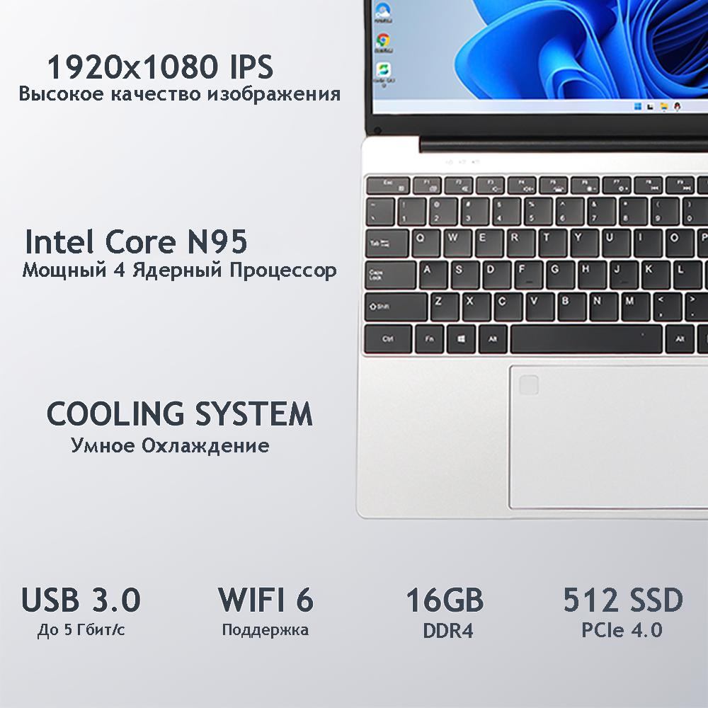 Сохранить15.6" Ноутбук для работы и учебы, Notebook, RAM 16 ГБ, SSD 512ГБ, IPS Full HD 1920x1080, Intel N95, Windows 11 pro, цвет Mid Gray, русская раскладка интересное: