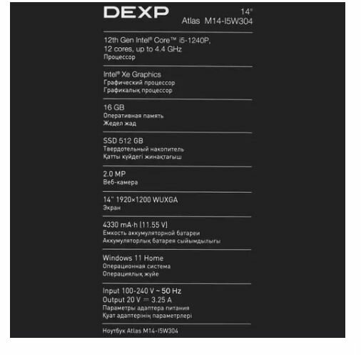14" Ноутбук DEXP Atlas M14-I5W304 серый интересное: