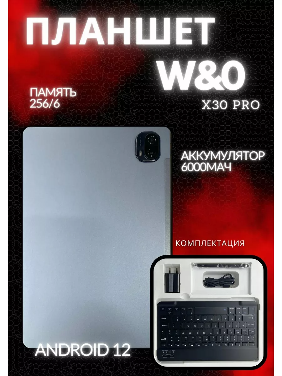 Планшет W&O X30Pro с клавиатурой, чехлом-книжкой и стилусом, 6 GB/256 GB, 10.36, Android 12, серый интересное: