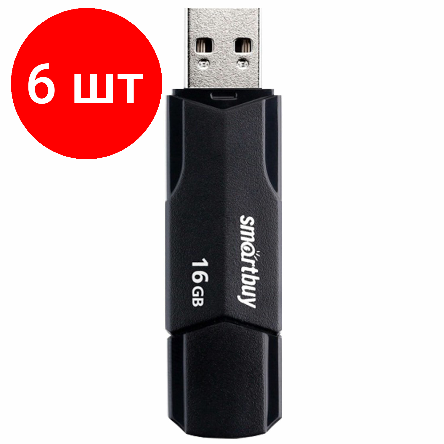 Купить Комплект 6 шт, Флеш-диск 16GB SMARTBUY Clue USB 2.0, черный, SB16GBCLU-K
