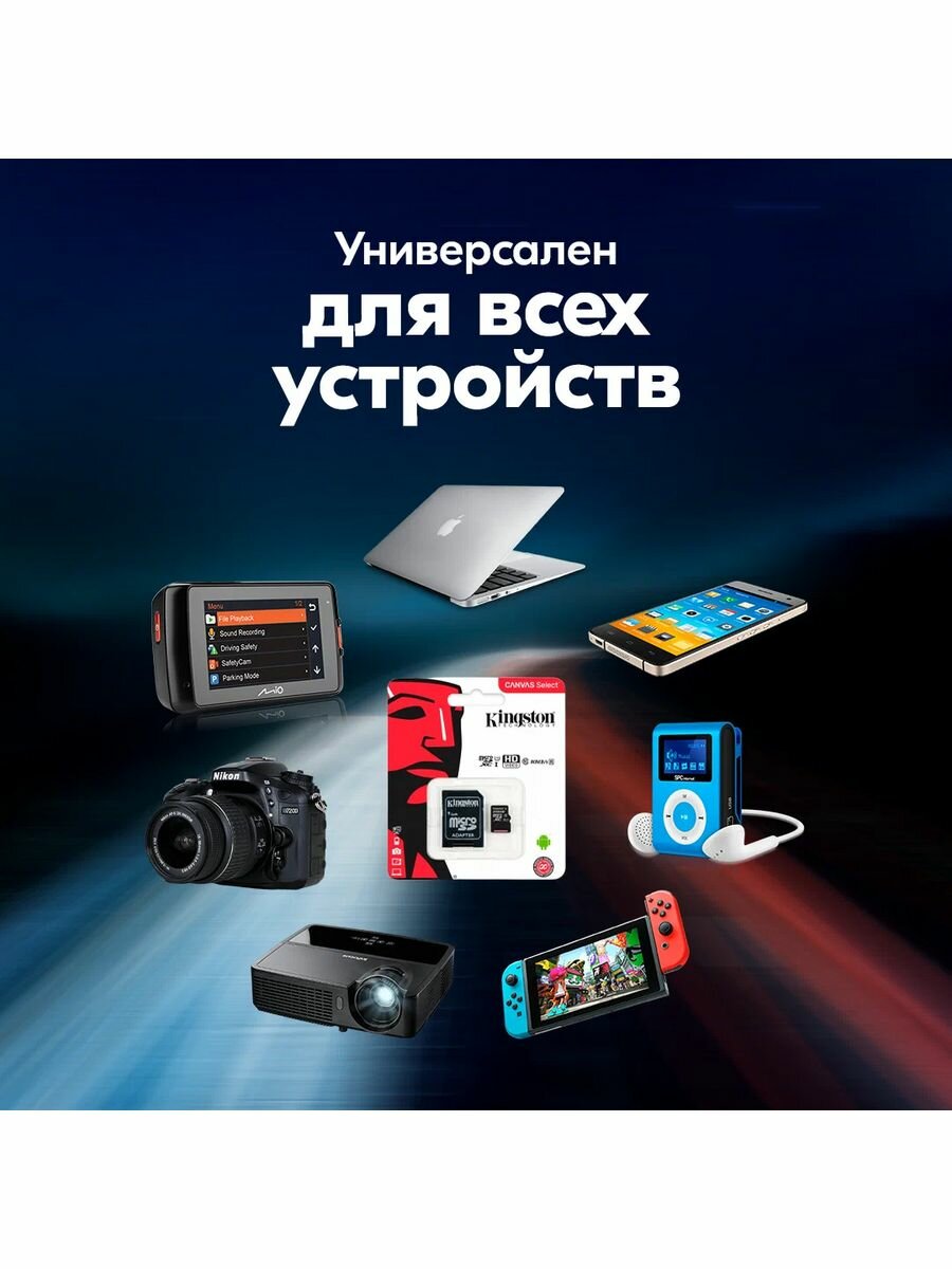 Карта памяти MicroSD 128Гб, класс 10, скорость записи/чтения 90 МБ/с