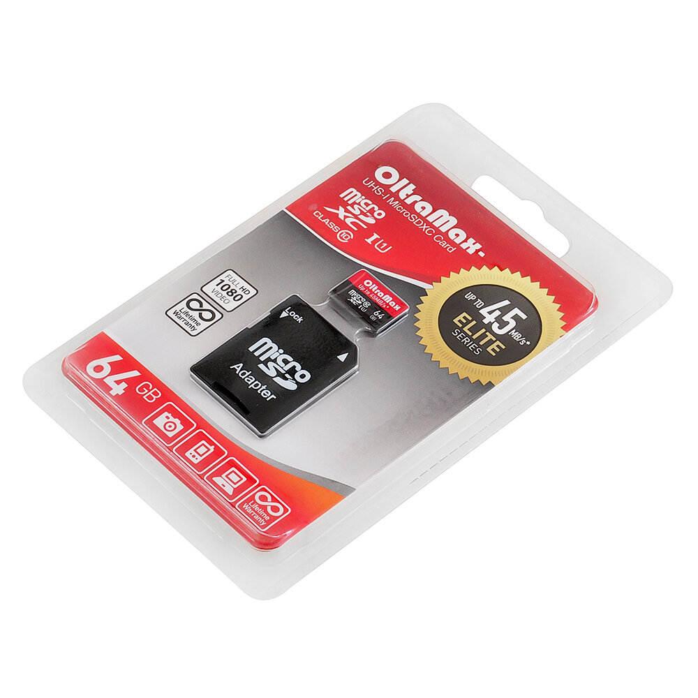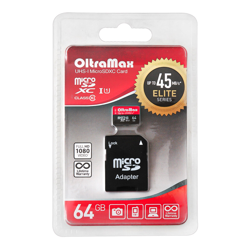Купить Карта памяти micro SD OLTRAMAX 64 GB с адаптером OM064GCSDXC10UHS-1-ElU1