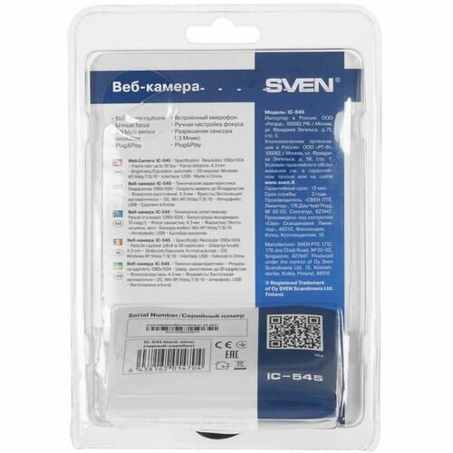 Веб-камера SVEN IC-545 чёрная (1280 x 1024, микрофон, USB)