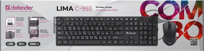 Купить Клавиатура и мышь DEFENDER LIMA C-993 RU беспроводные черный (45993)