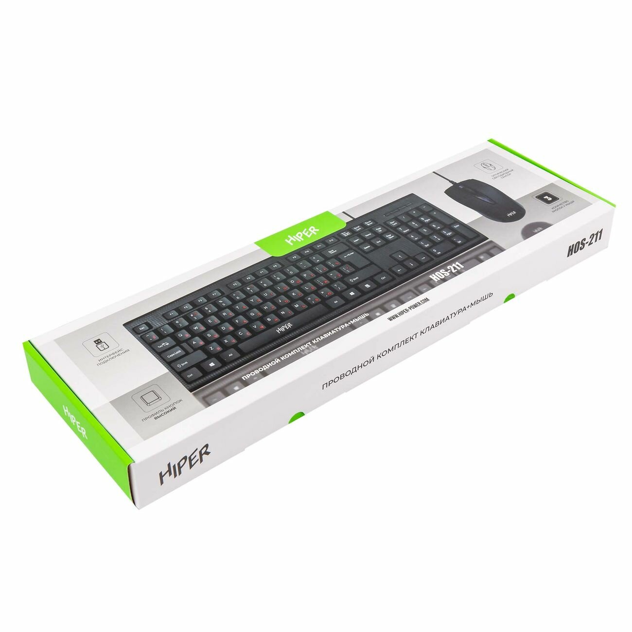 Комплект клавиатура+мышь HIPER HOS-211 интересное: