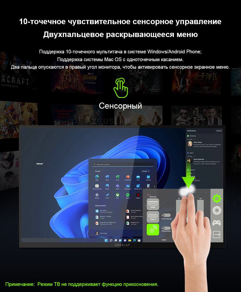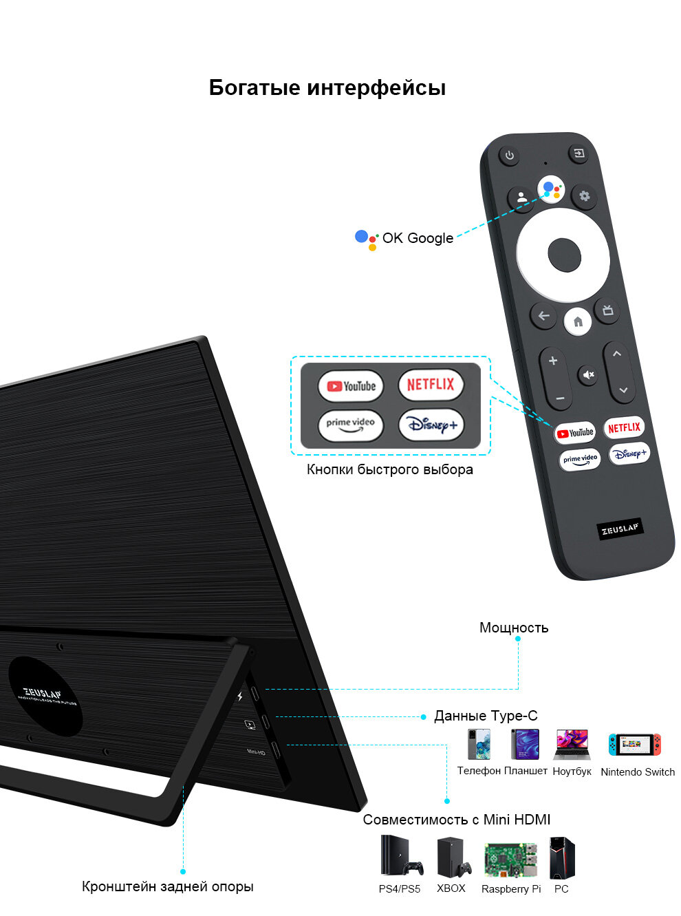 Монитор ZEUSLAP Z18TV PRO с Google TV для ПК, ноутбука, телефона и Xbox интересное: