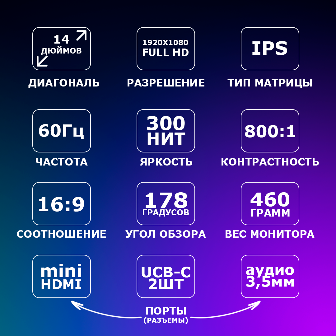 Монитор портативный, для компьютера, черный, ARZOPA A1 Gamut Slim 14" интересное: