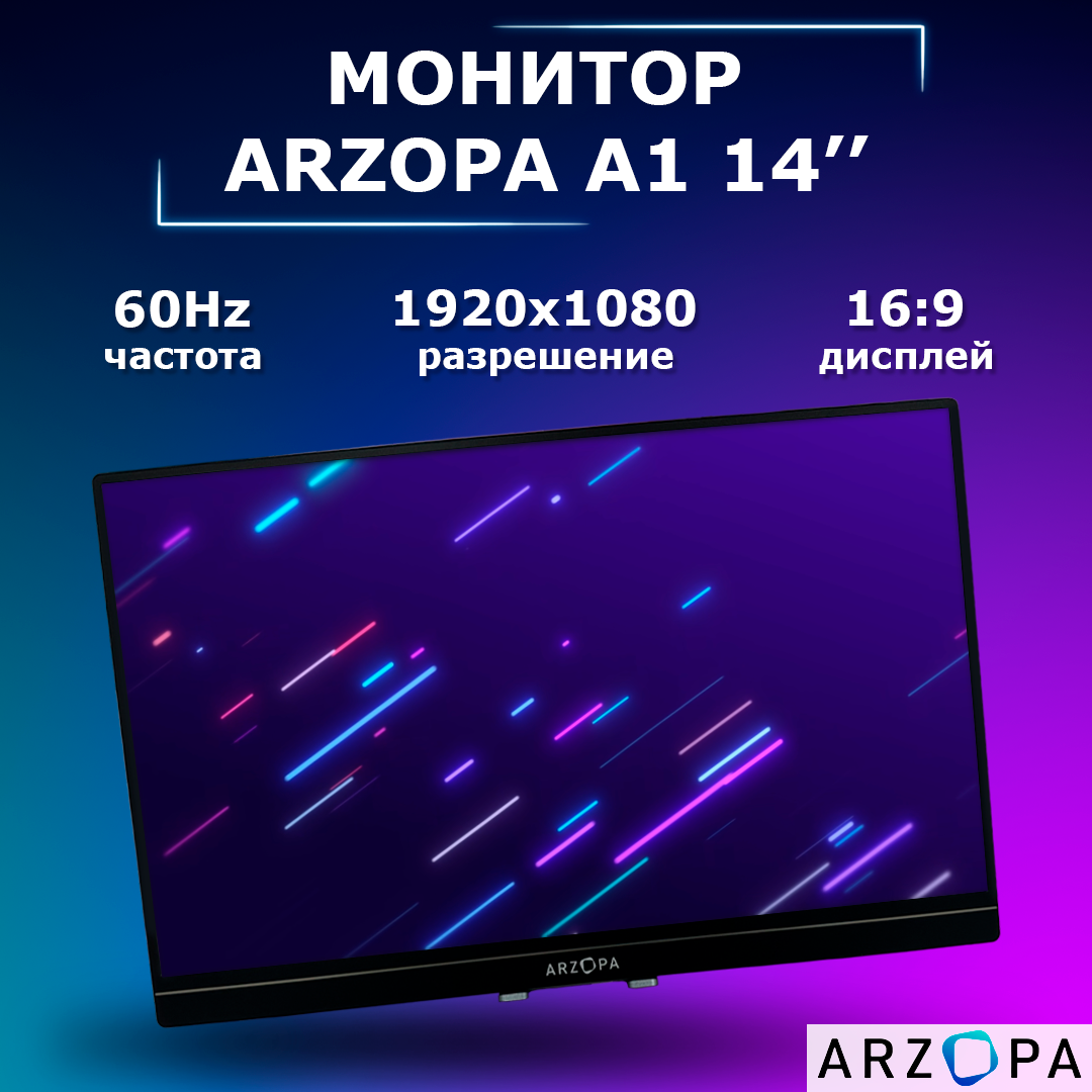 Купить Монитор портативный, для компьютера, черный, ARZOPA A1 Gamut Slim 14"