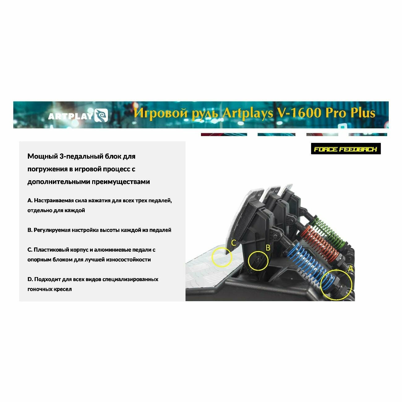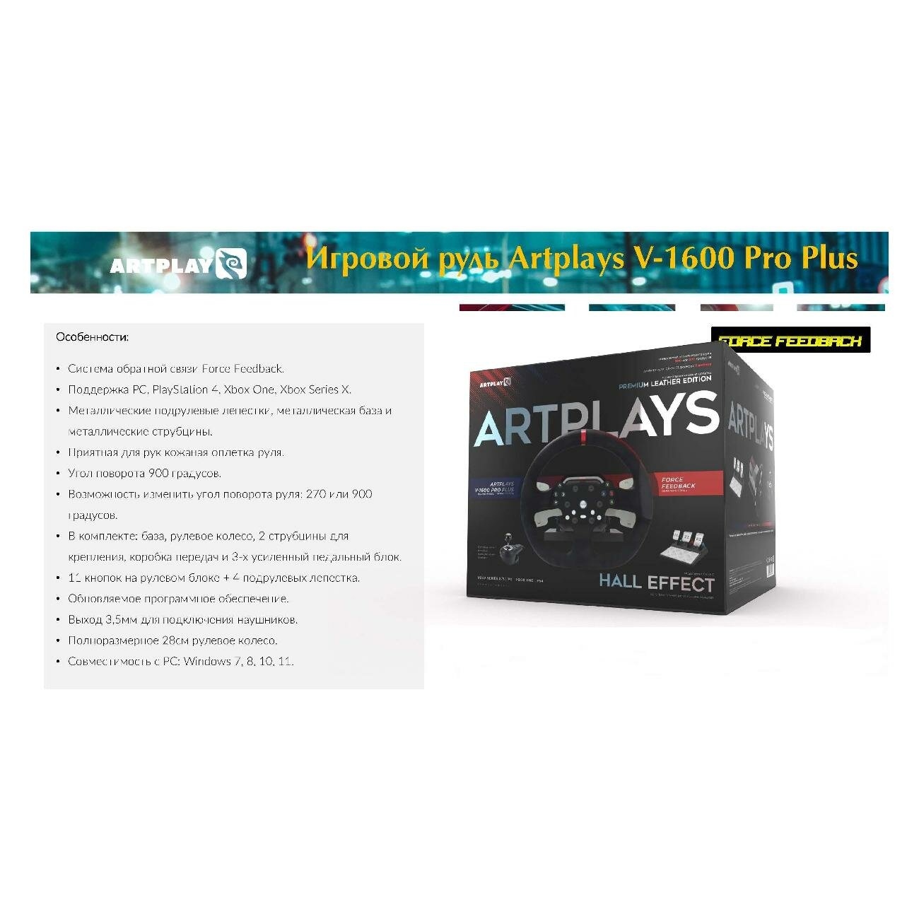 Руль Artplays V-1600 Pro Plus Force Feedback интересное: