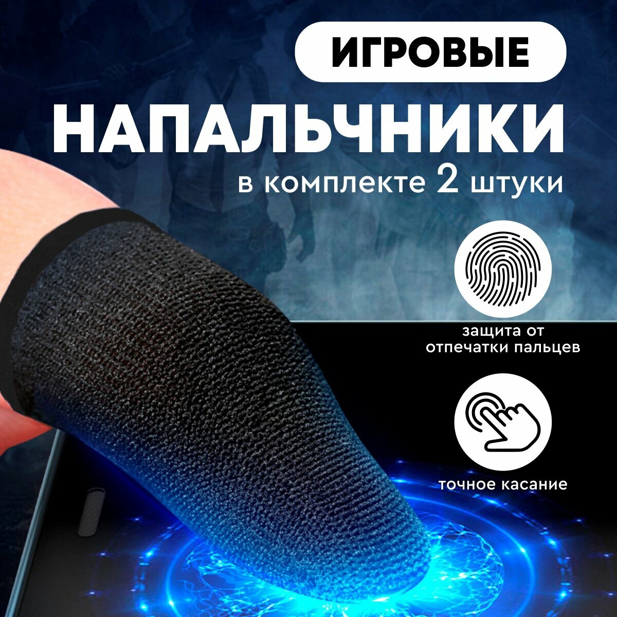 Игровые сенсорные напальчники для игр на телефоне (PUBG, Call of Duty Mobile) синий, 2 штуки