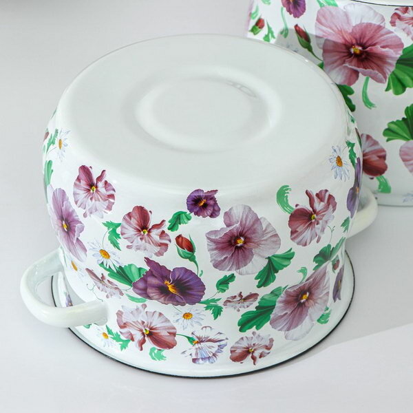 Набор эмал.посуды 2пр 10 белый Анютины глазки ковровая деколь (к.сф.5,5л,4л) N10B54