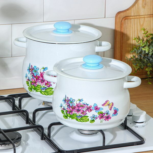 Сибирские товары Набор кастрюль «Анютины глазки», 2 предмета: 4 л, 5,5 л, эмалированные крышки, индукция