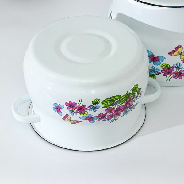Набор эмалированной посуды 4 пр, кастрюли 4,5.5 л, Сиб товары, Анютины глазки 10, N10B54