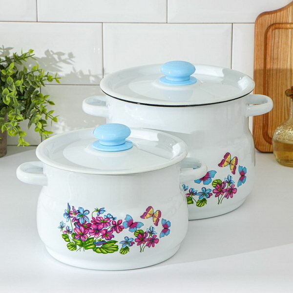 Набор кастрюль Фиалка 2 шт: 4/5,5 л, цвет белый Сибирские товары 2411207 .