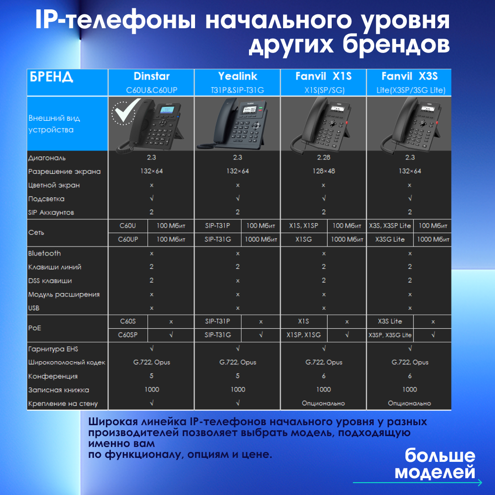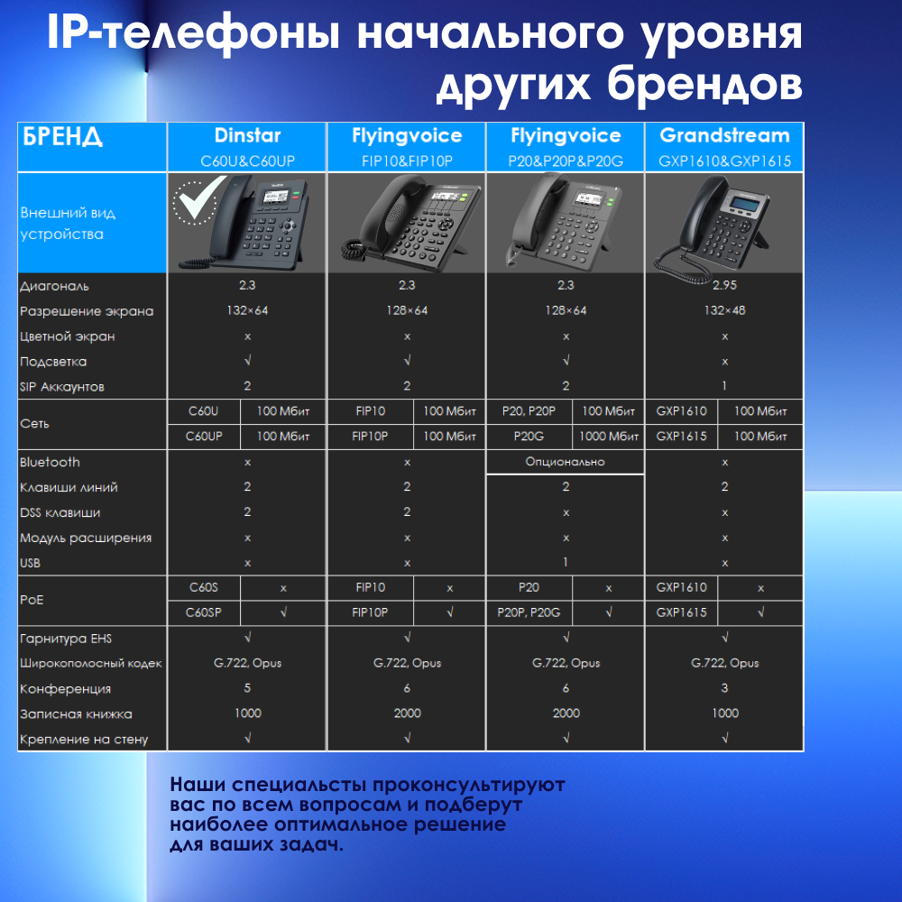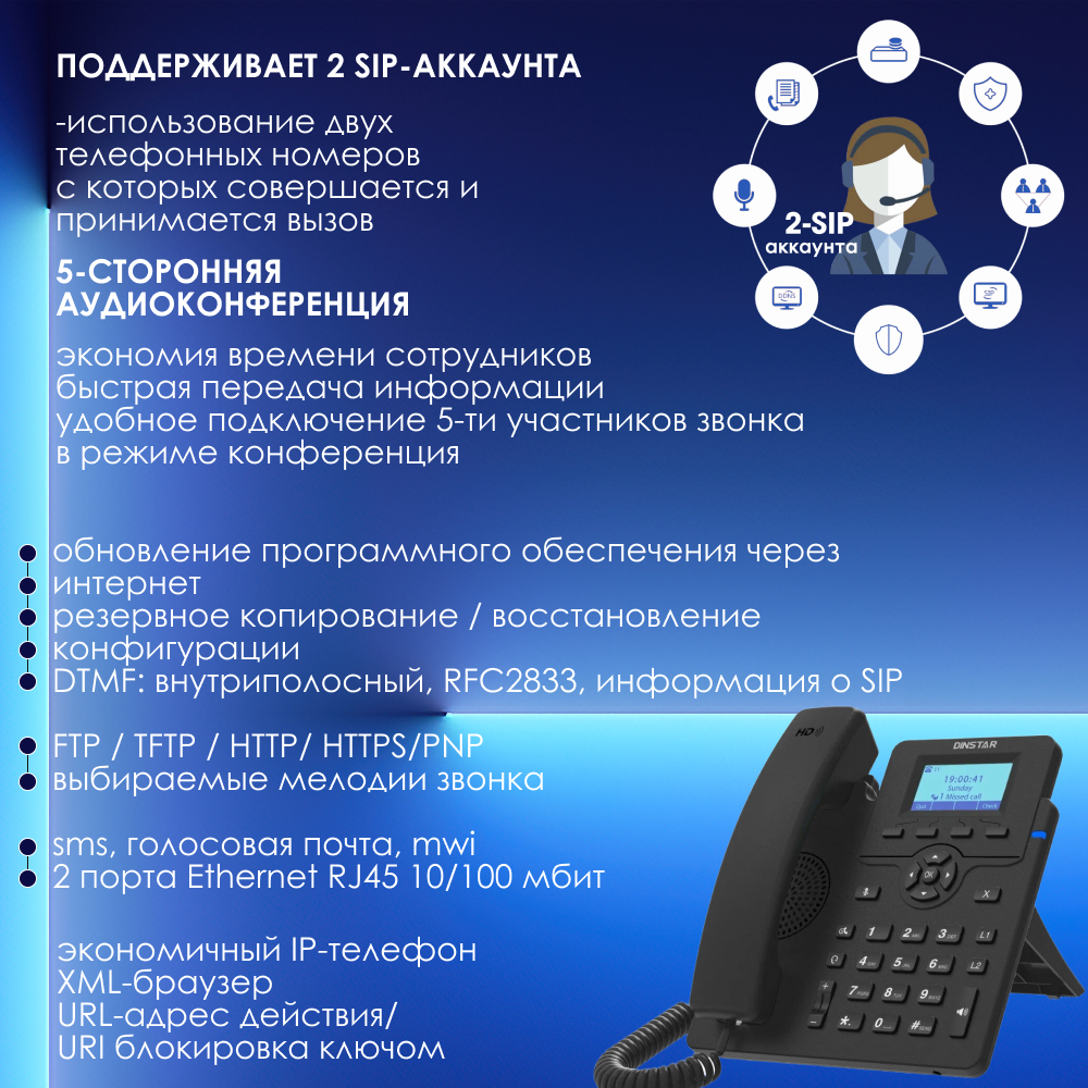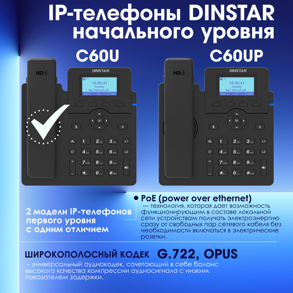 IP-телефон Dinstar C60U, 2 SIP аккаунта, монохромный дисплей 2,3 дюйма с подсветкой, конференция на 5 абонентов, поддержка EHS. интересное:
