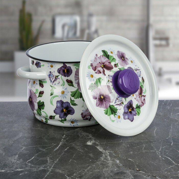 Набор эмал.посуды 2пр 10 белый Анютины глазки ковровая деколь (к.сф.5,5л,4л) N10B54