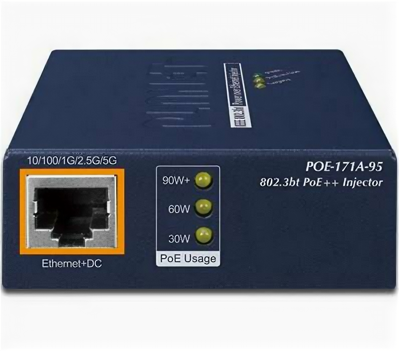 PLANET POE-171A-95 Single-Port Multi-Gigabit 802.3bt PoE++ Injector (95 Watts, 802.3bt Type-4, PoH, Legacy mode support, PoE Usage LED, 10/100/1G/2.5G интересное: