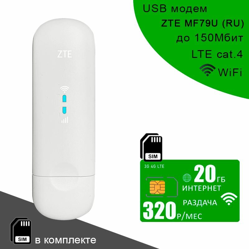 Купить USB модем ZTE MF79U (RU) I сим карта с интернетом и раздачей, 20ГБ за 320р/мес