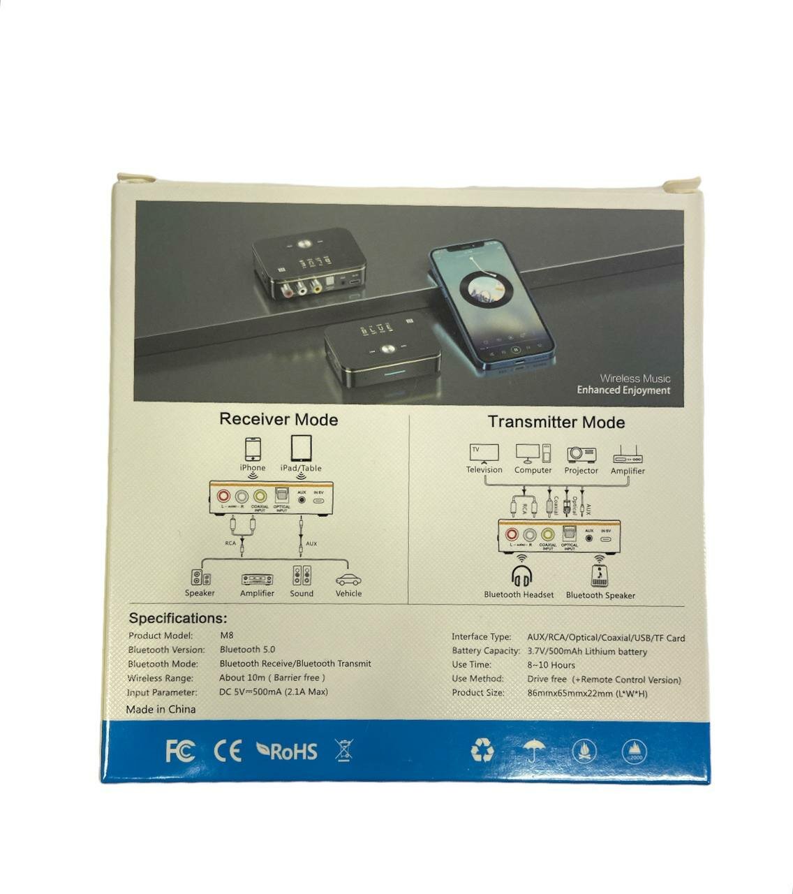Bluetooth адаптер M8 Трансмиттер Ресивер (Приемник Передатчик аудио) Coaxial Optical TosLink AUX RCA MicroSD USB плеер с пультом интересное: