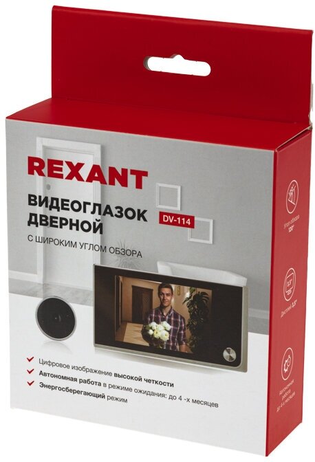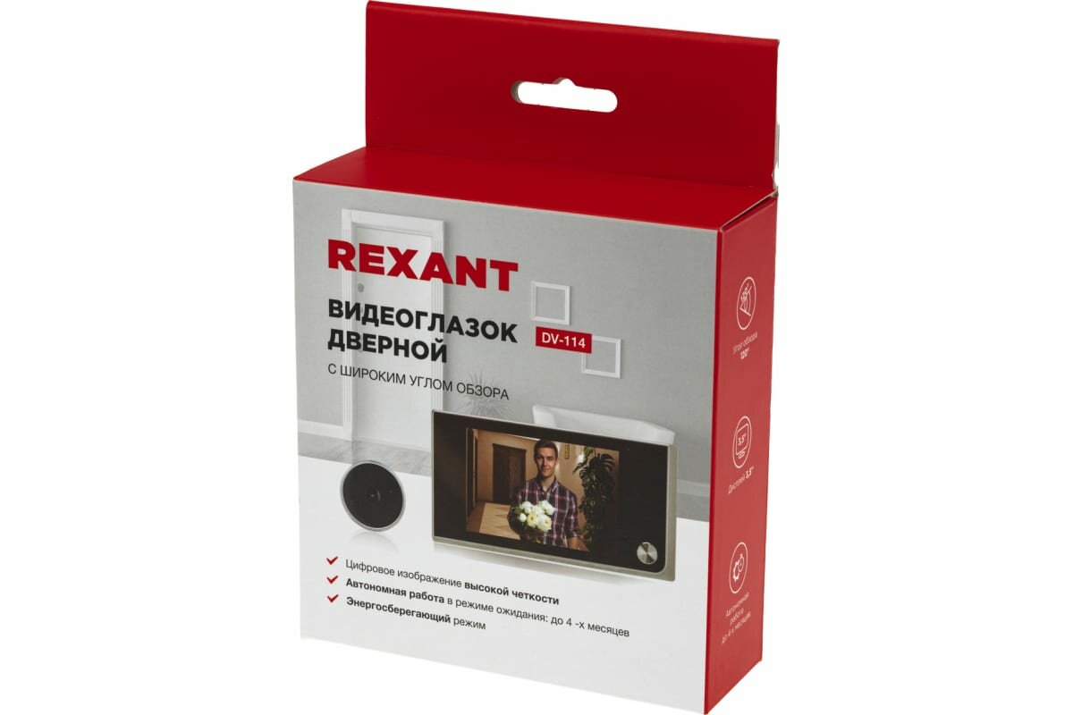 Видеоглазок дверной DV-114 с цветным LCD-дисплеем 3.5дюйм широкий угол обзора 120град. Rexant 45-1114