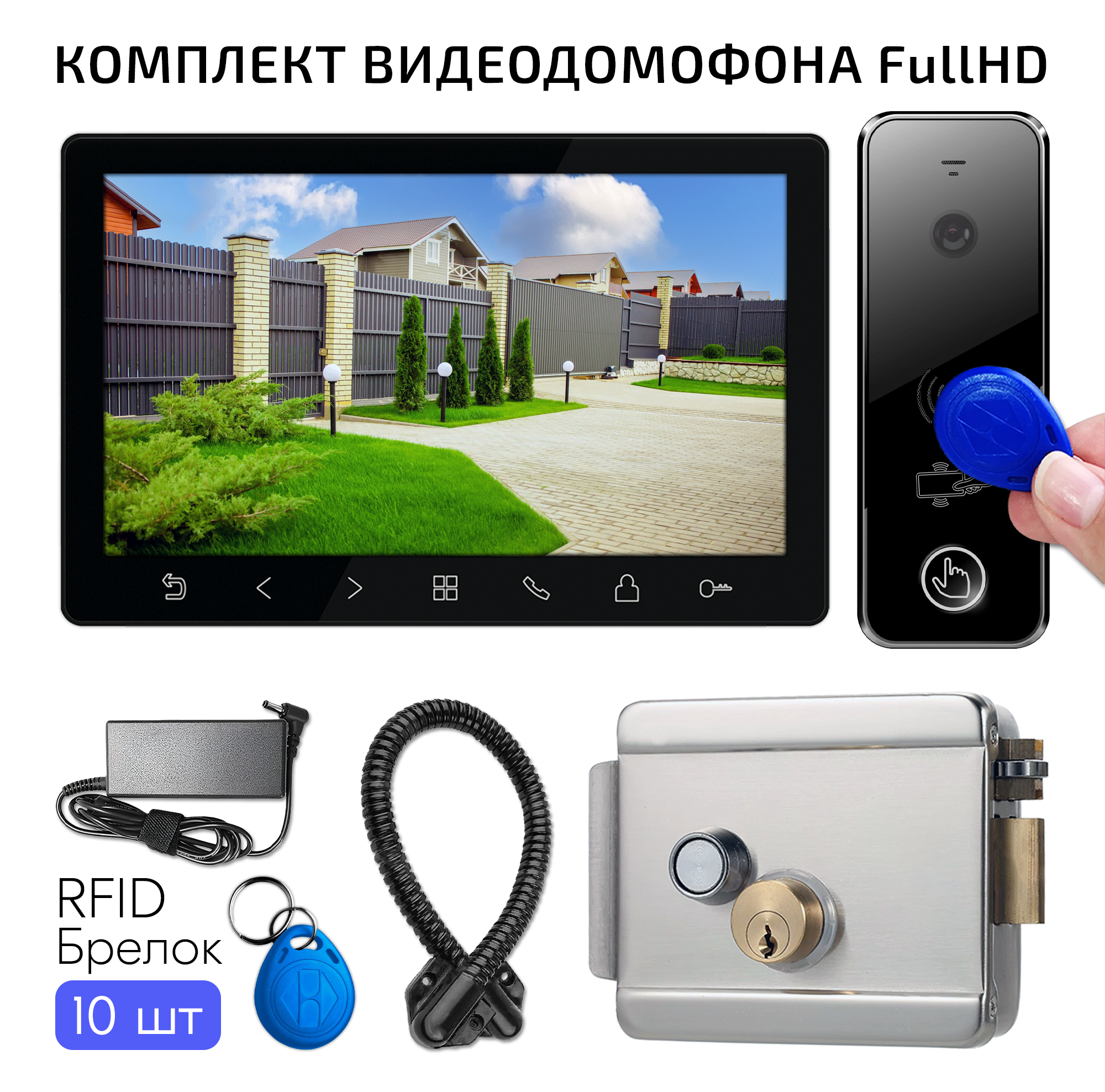 Комплект видеодомофона для дома FullHD, цветной монитор 7 дюймов и вызывная панель со встроенным считывателем, Черный интересное: