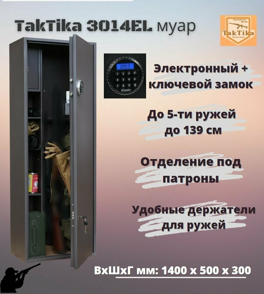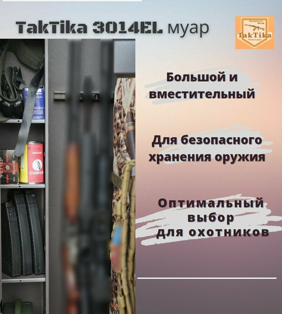 Оружейный сейф для оружия TakTika 3014EL муар на 4 и 5 стволов с кодовым замком, В140хШ50хГ30 см интересное: