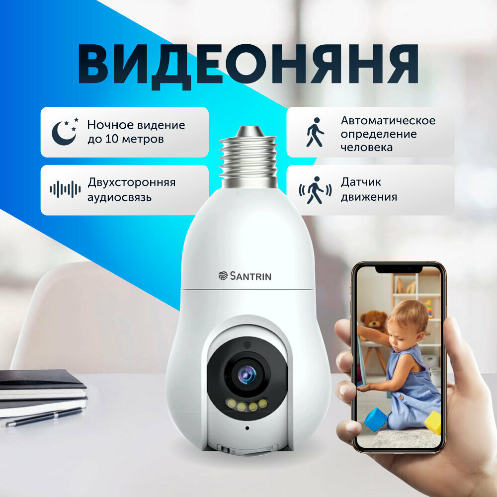 Камера видеонаблюдения 3 Mpix IP/лампочка/ WI-FI /поворотная PTZ/ с цоколем Е27/ для дома/ Видеоняня интересное: